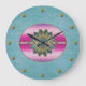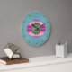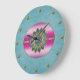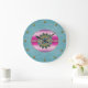 Grande Horloge Ronde Elegant Turquoise & Pink Art Deco Wall Clock