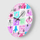 Grande Horloge Ronde Eléments de Noël sans couture flocon géométrique