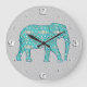 Grande Horloge Ronde Eléphant fleur Mandala - turquoise, gris & blanc