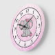 Grande Horloge Ronde Eléphant rose mignon enfant ou bébé pépinière