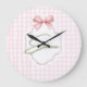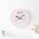 Grande Horloge Ronde Emma personnalisé ruban rose et imprimé vichy