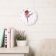Une ballerine de petite fille utilisant une couronne d'or frappe une pose dans un tutu rose sur cette horloge murale mignonne. Les nombres roses assortis rendent l'horloge facile à lire. Votre petite ballerine aimera avoir cette horloge dans sa chambre !