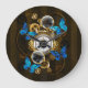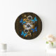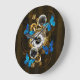 Grande Horloge Ronde Engrenages Steampunk et papillons bleus