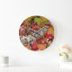 Grande Horloge Ronde Érable Feuille D'Automne Couverture Écorce De Birc
