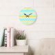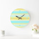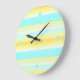 Grande Horloge Ronde Eté Soleil Jaune Aqua Bleu Aquarelle Rayures