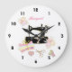 A beautiful Clock with a black vintage sewing machine surrounded by pretty colored fabric pieces, bobbins of thread, scissors and buttons. A great wall decor for any sewing room or craft shop. Would make a great venin pour any quilter or sewer. The clock can be personalized by changing the name to another name to make it special.