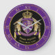 Créez votre propre armoiries, emblème, insignia ou crête de famille aristocratique avec ce magnifique escutcheon classique ou design de bouclier. Des motifs royaux violets ornent un bouclier surmonté d'une couronne dorée et flanqué d'un ange classique avec trompette et lyre. Une bannière correspondant tient votre date de mariage personnalisée / date de naissance / slogan ou cri de bataille. Le bouclier a de l'espace pour vos initiales monographiques. La bannière inférieure porte votre nom de famille. Il y a aussi de l'espace ci-dessous pour votre citation, devise ou message préféré. Remplacez l'exemple de texte par le vôtre pour un cadeau personnalisé. Un design neutre pour les femmes qui conviendra aux familles, aux groupes, aux couples ou aux individus. Fait un cadeau merveilleux pour Mariage, Anniversaire, Anniversaire, Retraite, Promotion, Fête des Pères, Bachelor Party, Wedding shower, Graduation, Journée Internationale de l’Heraldique, Fêtes médiévales ou d’Imaginaire et autres occasions spéciales.