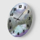 A clock with a beautiful photo manipulation of a scenic landscape. A river rushes through an opening in a lush forest. Rock and mountains tower in the background. Le ciel est twinkles with stars and ethereal cosmic looking clouds. I really love this magical landscape image, it gives a sense of awe and wonder at the beauty of nature. It is my pleasure to share it with others, et I hope it brings a little bit of joy to you too.