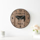 Personalize this custom barnwood styled clock with your farm, ranch, or stable name to add a personal touch to the decor. Perfect for the rodeo or livestock barn. Brown barnwood look clock face with beef bull cow silhouette in center. Choose one of two sizes and two colors of clock hand, whichever is to your liking.