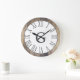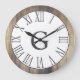 Grande Horloge Ronde Farmhouse Rustic White & Faux Wood Gray Numerals