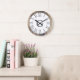 Farmhouse chic wall clock with a faux wood print edge and white face with gray numerque. Personalized your monogram letter.