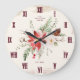 Grande Horloge Ronde Ferme Noël hiver Poinsettia Rustique