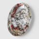 Ce charmant ornement capture le Père Noël orné de son casquette et de son manteau rouge classique, entouré de verdure festive et d'accents dorés. Son expression joyeuse mais sage traduit la chaleur de la période des fêtes. Cette pièce décorative est parfaite pour ajouter une touche de gaieté à toute célébration de Noël.