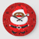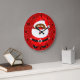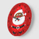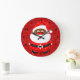 Horloge murale de Noël afro-américaine du Père Noël qui comprend un joli Père Noël noir lunatique et des flocons de neige sur un arrière - plan rouge.