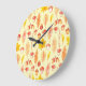 Grande Horloge Ronde Feuilles d'automne : aquarelle papier peint rétro