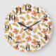 Grande Horloge Ronde Feuilles d'automne en chute chaude avec fleurs