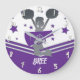 Grande Horloge Ronde Filles de pom-pom girls étoiles violettes et blanc