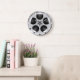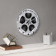 Une horloge murale de style urbain avec des chiffres noirs et blancs, et une illustration numérique d'une bobine de film rétro. Disponible dans d'autres options. Visitez notre magasin pour plus de Cadeaux thématiques cinéma et autres Accessoires maison.