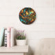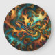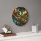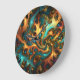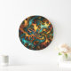 Grande Horloge Ronde Flammes Abstraites or Turquoise orange,