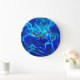 Grande Horloge Ronde Fleur de carnation bleue et Turquoise
