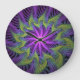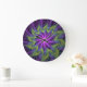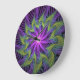 Grande Horloge Ronde Fleuron vert violet Art Abstrait fractal moderne