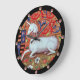 GRANDE HORLOGE RONDE FLEURS D'IMAGINAIRES UNICORNES ET MÉDIÉVAUX, MOTIF