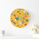 Grande Horloge Ronde Fleurs jaunes et roses blanches 10