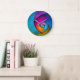 Grande Horloge Ronde Floral moderne Art Abstrait rose Bleu Motif #17