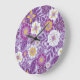 Grande Horloge Ronde Floral pourpre, jaune et magenta