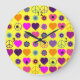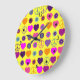 Grande Horloge Ronde Flower Power Heart Peace Motif + votre backgr.