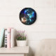 Fabulous, glowing, blue and yellow, night butterfly on dark background.