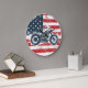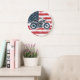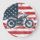 Grande Horloge Ronde Freedom Ride : Moto rétro et drapeau américain