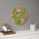 This pretty, custom round clock includes sur original drawing of a frog surrounded by hand-drawn tropical leaves and flowers. The background image is made to look like burlap Use the template to easily add your own name. Choose your own clock size.