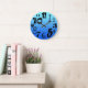For a fun look if you loblue, this is a stylish clock with funky numbers, in different sizes and syles, on a shaded gradient electric blue clock face.