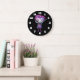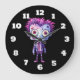 Une horloge avec une jolie illustration. Monstre Frankenstein aux cheveux roses et violets et costume et cravate en dapper.