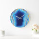 Grande Horloge Ronde Géode marbrée Abstrait bleu profond et or