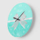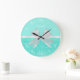 Grande Horloge Ronde Girl Aqua Turquoise Damask Ruban blanc avec nom
