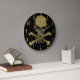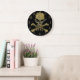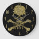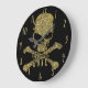 Grande Horloge Ronde Glamour noir jusqu'à l'os Crâne à paillettes dorée