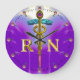Grande Horloge Ronde GOLD CADUCEUS REGISTERED NURSE SYMBOL,Blue Purple