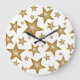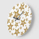 Modern design with "shining" gold and white stars on a white background. Wall clock with a customizable design for you to personalise with your own text, images and ideas. Please note that this is a printed image created using original photographs and digital techniques, it does not shine or contain real sparkles.