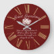 Cette horloge murale personnalisée garde un message spécial pour Grand-mère, ou Grand-mère, des enfants sur un arrière - plan de couleur bordeaux. Un bouquet floral à l'aquarelle de lys et de fleurs de cerisiers est placé près du sommet. Vous pouvez personnaliser le message et remplacer l'exemple par votre propre texte personnalisé et vos noms de famille.