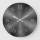 Grande Horloge Ronde Gray Metallic Clock with Patterned Roman Numbers