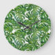 Grande Horloge Ronde Green Monstera Feuilles Tropical sans couture