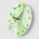 This clock features a pretty abstract image of green bottles and wine glasses. Makes a great kitchen clock! The green numbers make it easy to read.