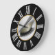Grande Horloge Ronde Gris Noir Argent Gris Romain Numéros Lash