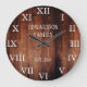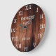 Horloge murale rustique en bois de grange foncé avec de grands nombres romains. Vous pouvez personnaliser et ajouter votre propre nom et année établie.
