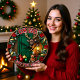 This humorous, rustic clock features a grumpy reindeer wearing glasses and a bell collar, standing in front of a green wooden door. The clock face is framed by a garland of pine, poinsettias, and ribbon, and includes holiday ornaments and a plush reindeer toy. The phrases "OH NO" and "NOT YOU AGAIN" add a funny, sarcastic touch to this cozy, vintage-style Christmas decor.