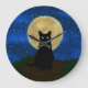Grande Horloge Ronde Halloween Chat noir Silhouette Lune