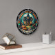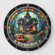 This round wall clock features a spooky and enchanting Halloween scene with a grand haunted house illuminated by glowing windows at dusk. A gnarled tree, a grinning jack-o'-lantern, and smaller pumpkins line a winding path, with a banner reading "ENTER IF YOU DARE" at the bottom. This clock is perfect for adding a touch of gothic mystery to your Halloween decor.