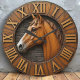 horse head wooden sculpture rustic carved wood design, equestrian themed timepiece, farmhouse wall art, western home accessory, horse lover gift, stable decor clock, vintage animal clock